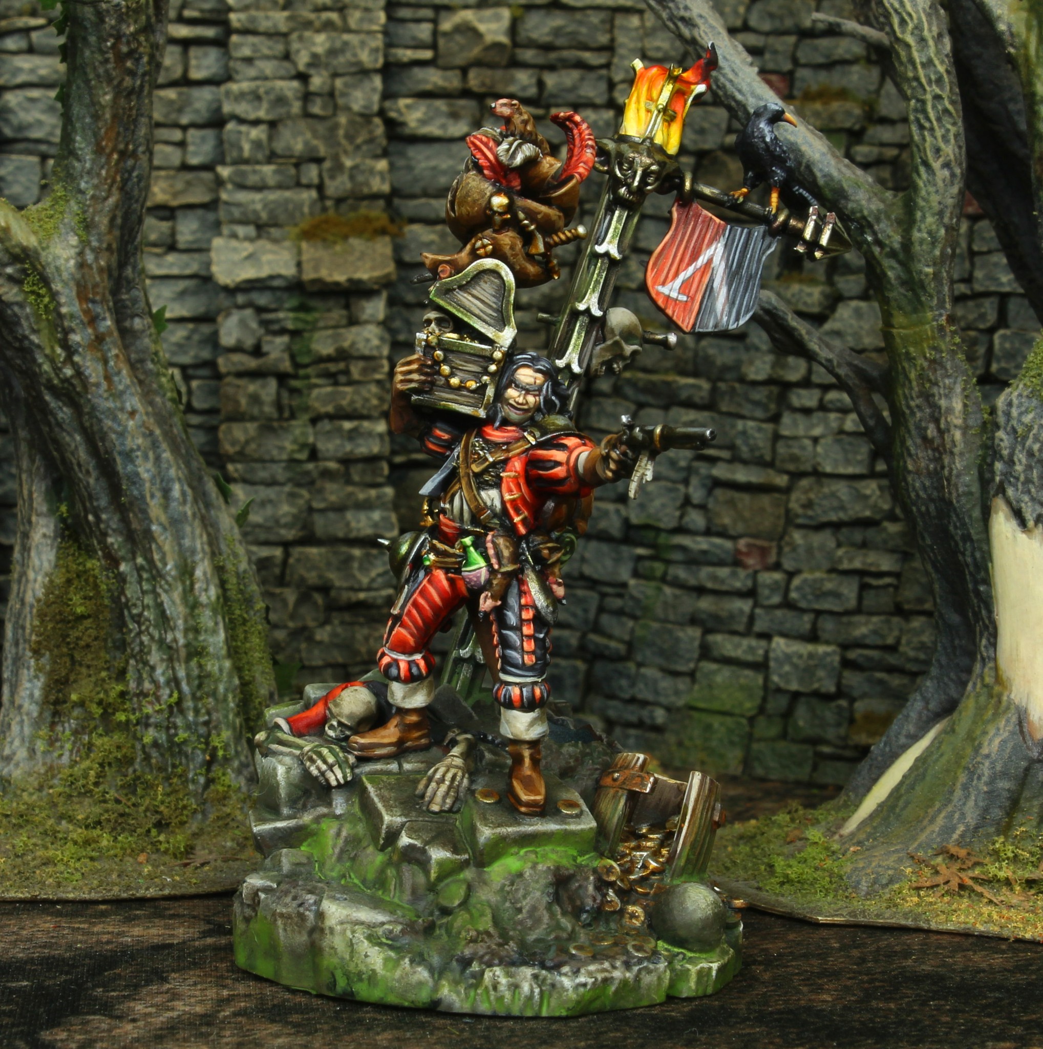 A noté que récemment, en 2024, une nouvelle version a été produite pour les 25 ans de Mordheim. Toujours sculptée par Giuseppe Chiafele et produite par Axia Miniatures, cette version présente Luthor comme un pirate et a du droit à ses propres règles. Cette vision pirate, bien que magnifique m’a peu emballé et j’ai préféré laisser passer.