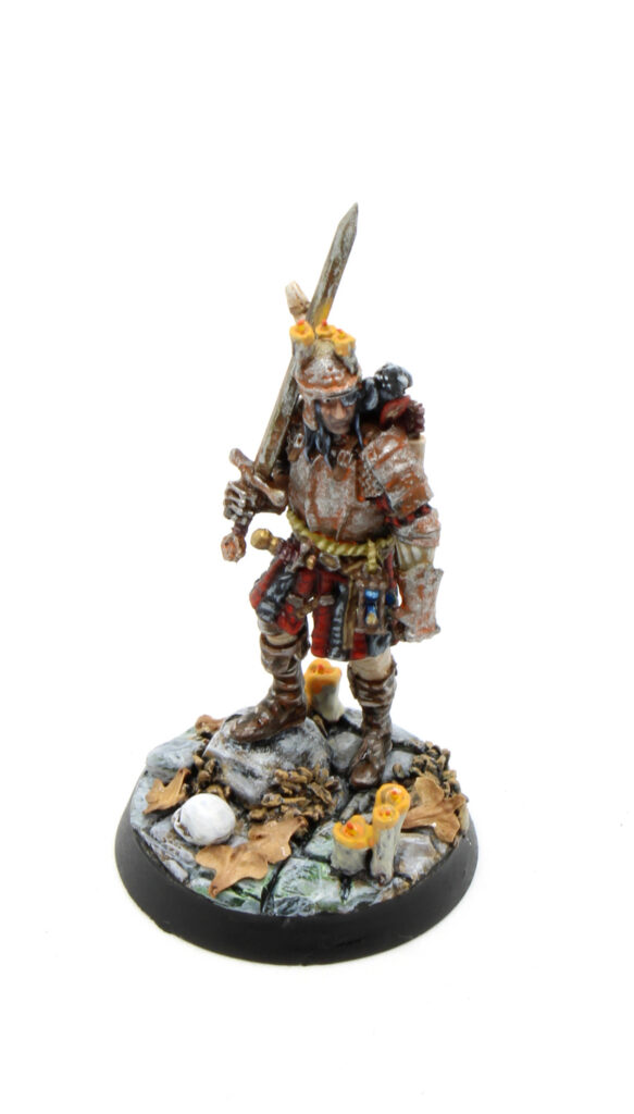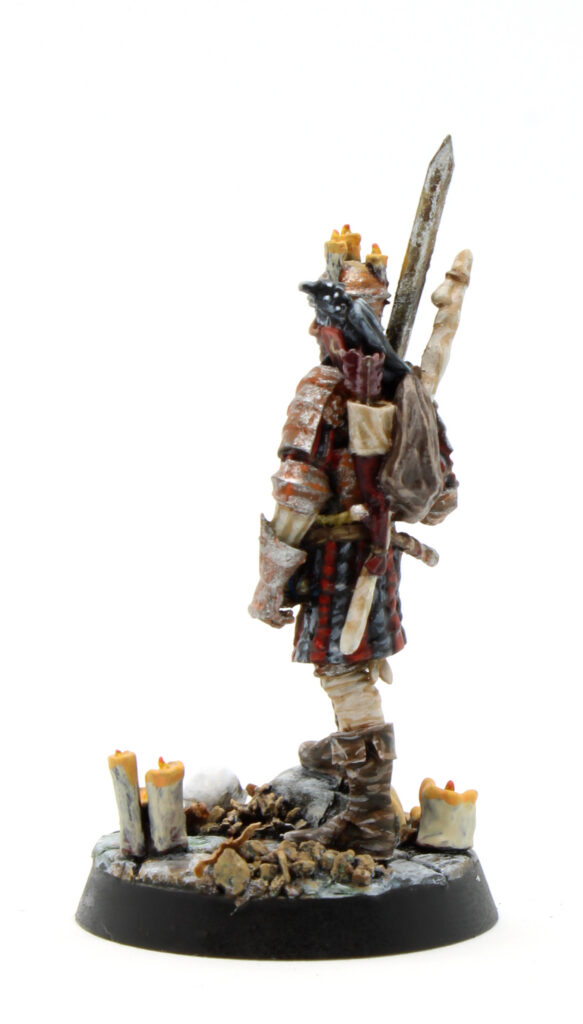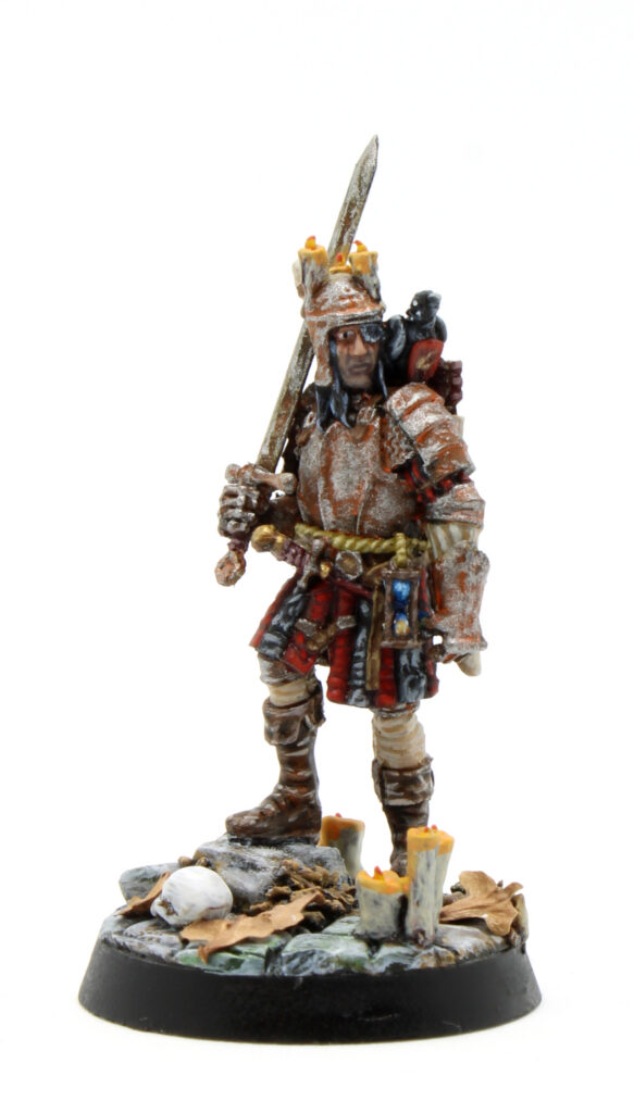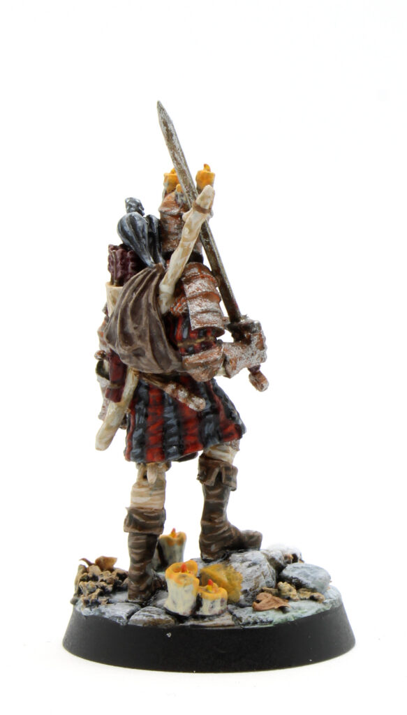 J’aime beaucoup cette figurine et la sculpture de Giuseppe Chiafele. Une nouvelle fois par contre, je suis plutôt déçu du moulage d’Heresy Lab, trop fin, à la résine cassante et avec plusieurs problèmes de finitions des petits éléments. Bref déçu pour le prix de la figurine et il m’a donné beaucoup de travail de rattrapage à la green stuff. Notamment les pommeaux d’épées qui s’étaient cassés dans le transport et perdu dans un étui mal fermé. Malgré tout je suis très satisfait de cette figurine et c’est avec joie qu’elle intègre ma collection.