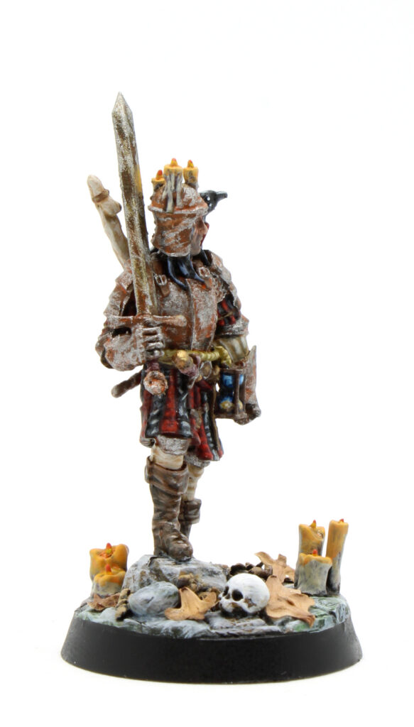 La figurine de 2021 est sculpté par Giuseppe Chiafele (dont j’aime beaucoup le travail et notamment sa série des Tales of The Old World) et produite par Heresy Lab à nouveau. C’est la version que j’ai découverte de ce personnage et sur laquelle j’ai pu mettre la main car j’adorais l’art de John Wigley, qui traduisait pour moi toute l’ambiance de Mordheim.