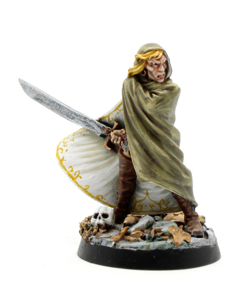 Les rumeurs abondent sur ses origines. Les elfes évitent généralement les communautés humaines et Mordheim en particulier mais, pour quelque raison inconnue, le grand et pâle bretteur reste à proximité de la cité depuis des mois.