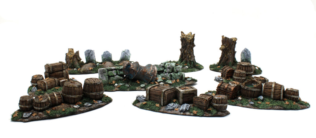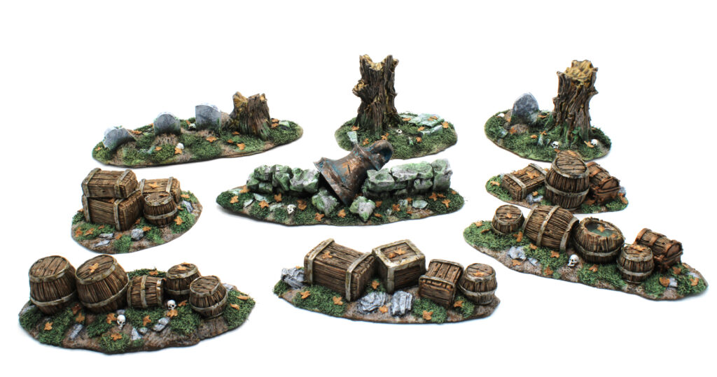 Ces petites barricades de tonneaux ou de stèles funéraires viennent de feu la boutique physique de Momminiaturas qui n’est désormais plus qu’une boutique de STLs dont je n’ai pas vu d’éléments de décors. Et ces bien dommage je trouve, car ces moulages étaient de qualité et fort peu cher (malgré quelques de défaut de fabrication certes, mais à ce prix… Mais ça, c’était avant…).